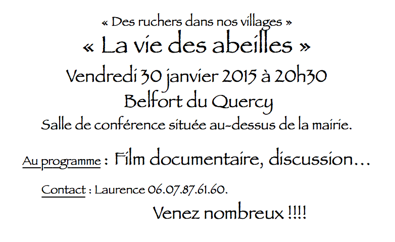 La discussion sera animée par Giani Costanzo, apiculteur à Puylaroque, et René Jonas, apiculteur à Belfort du Quercy et administrateur de "La Ruche du Quercy".