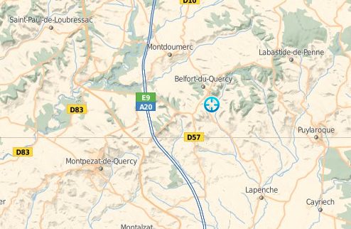 Un plan pour situer Belfort du Quercy, commune à mi-chemin entre Lalbenque (46) et Caussade (82).