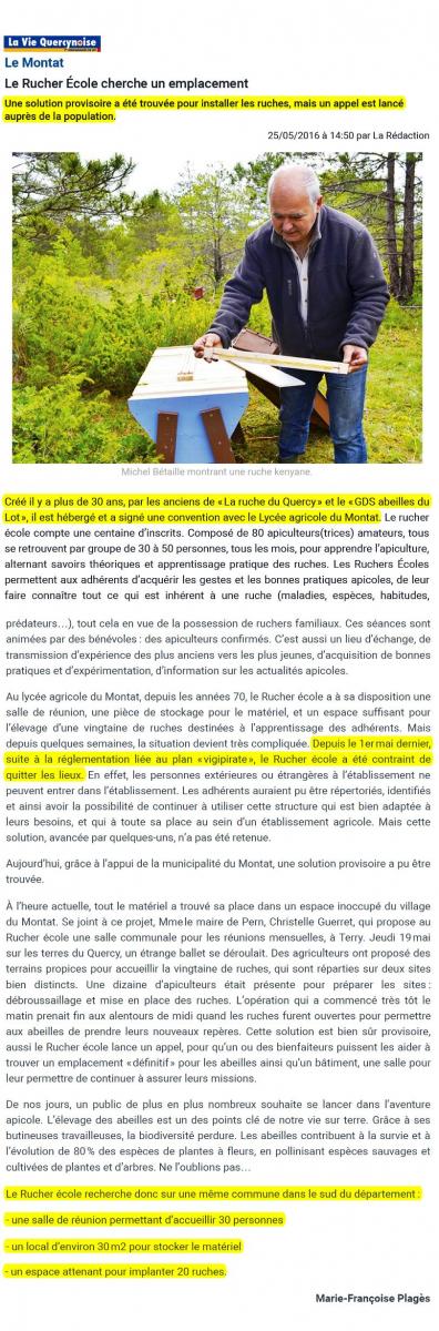 Le rucher école cherche un emplacement (La Vie Quercynoise)